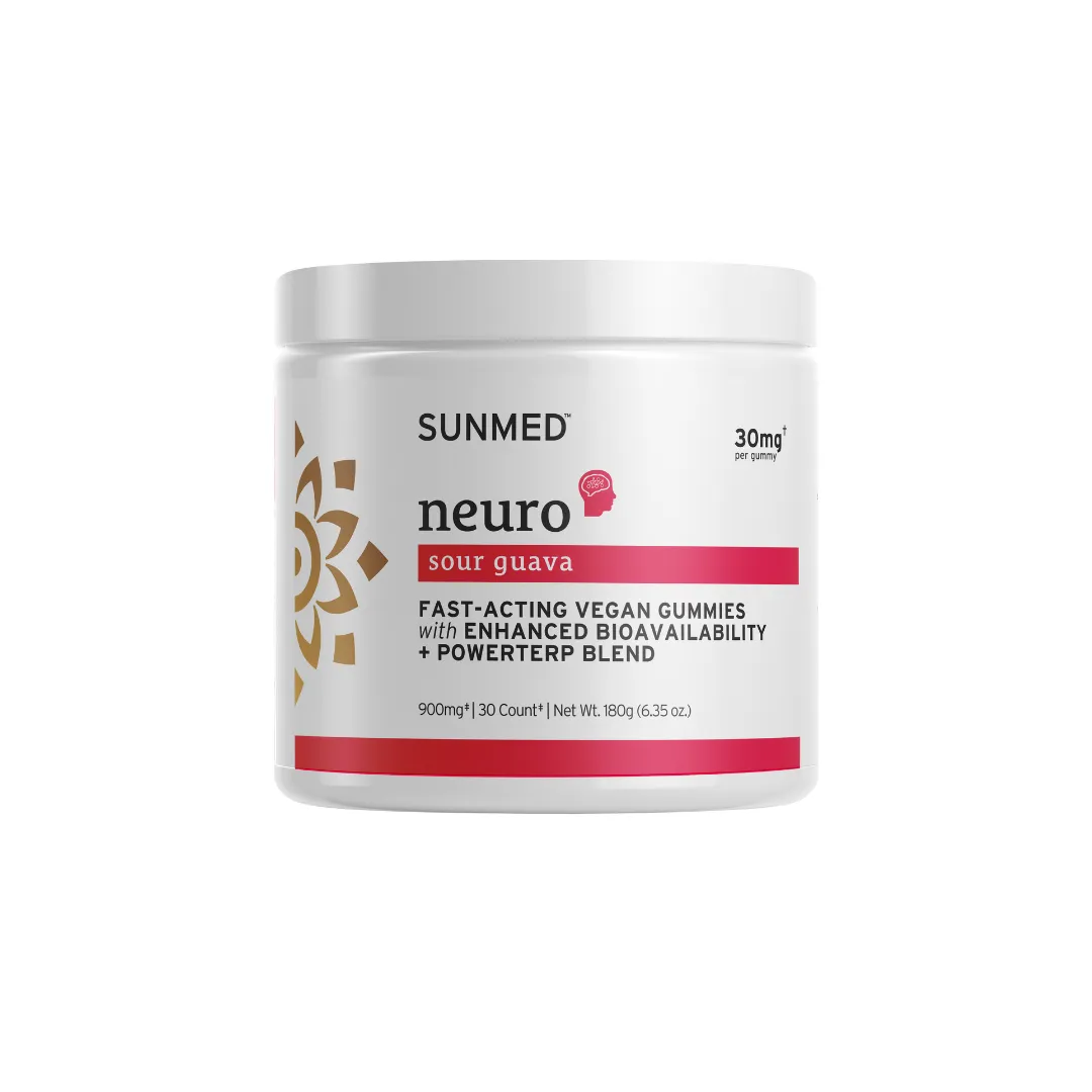 Whether you’re looking for morning focus, midday relief, or peace and calm once the day is done, this premium hemp supplement is here to help your mind find ease. Start your day with one Neuro gummy and keep your jar handy for as-needed situations. Pair Neuro with other Sunmed hemp products, like our Full Profile Vegan Wellness Hemp Gummies for maximum impact.